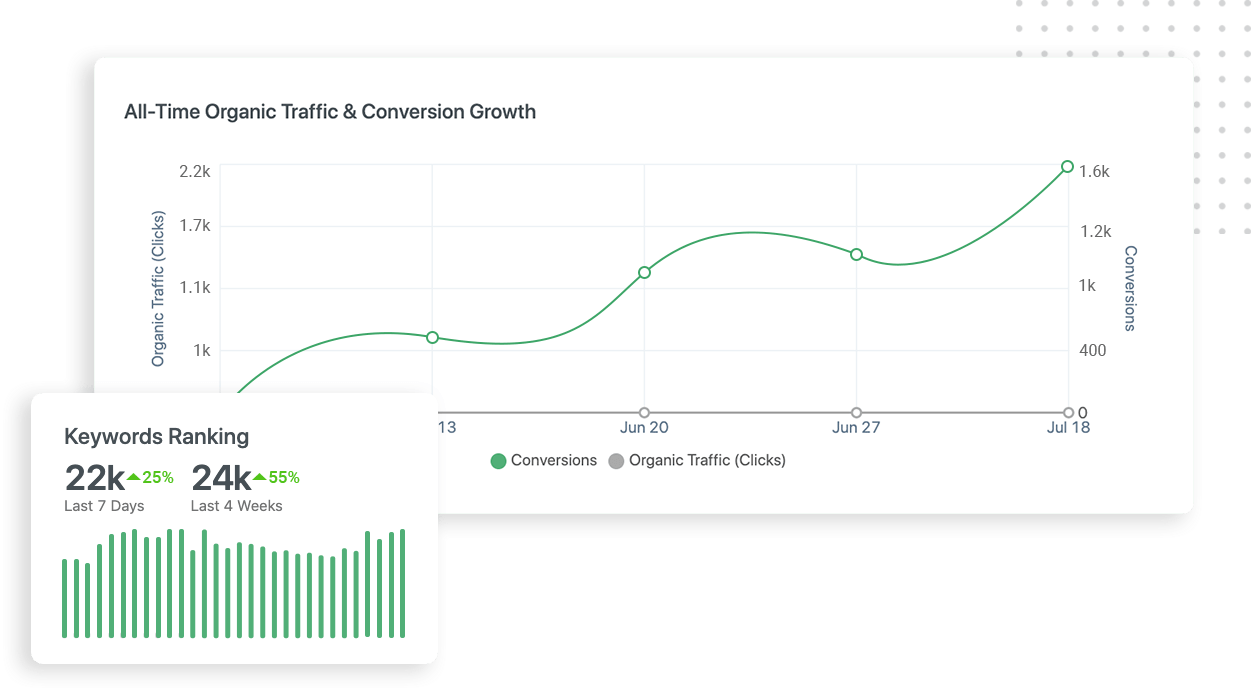 Track performance on popular search engines, like Google, to improve SEO. Work with our Content Marketing Specialists to help your organic traffic grow.